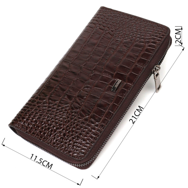 - шкіряна ручка для долоні на тильній стороні; Широкий чоловічий клатч із натуральної шкіри з тисненням під крокодила, гаманець закривається на блискавку, всередині можна без проблем розміщувати паперові банкноти, банківські картки та навіть смартфон. Аксесуар складається з двох відділень для купюр, двох прилеглих кишень, сімнадцяти слотів для кредиток та монетниці на блискавці. Є також ручка долоні на тильній стороні клатчу. Продається гаманець у гарній коробці від виробника. Якісний і надійний клатч - саме такий аксесуар повинен бути у кожної людини, що поважає себе. ОПЛАТА та ДОСТАВКА : накладний платіж з передоплатою 200 грн.Терміни відправлення : 1-3 робочих днів