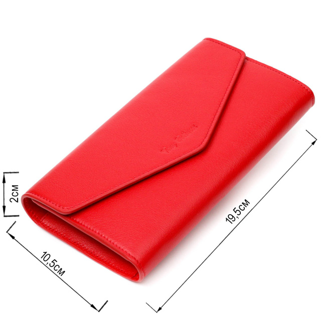 - гаманець упакований у фірмову коробку. Стильний місткий жіночий гаманець із натуральної шкіри. Аксесуар складається з двох широких відділень для купюр, дванадцяти осередків для пластикових карток, двох прилеглих кишень та монетниці на блискавці. У виробі використано якісну фурнітуру золотистого кольору. Закривається гаманець трикутним клапаном на кнопку. Купуючи цей шкіряний гаманець, Ви не тільки набуваєте стильної речі, але й отримуєте якісний аксесуар, який прослужить не один рік. ОПЛАТА та ДОСТАВКА : накладний платіж з передоплатою 200 грн.Терміни відправлення : 1-3 робочих днів