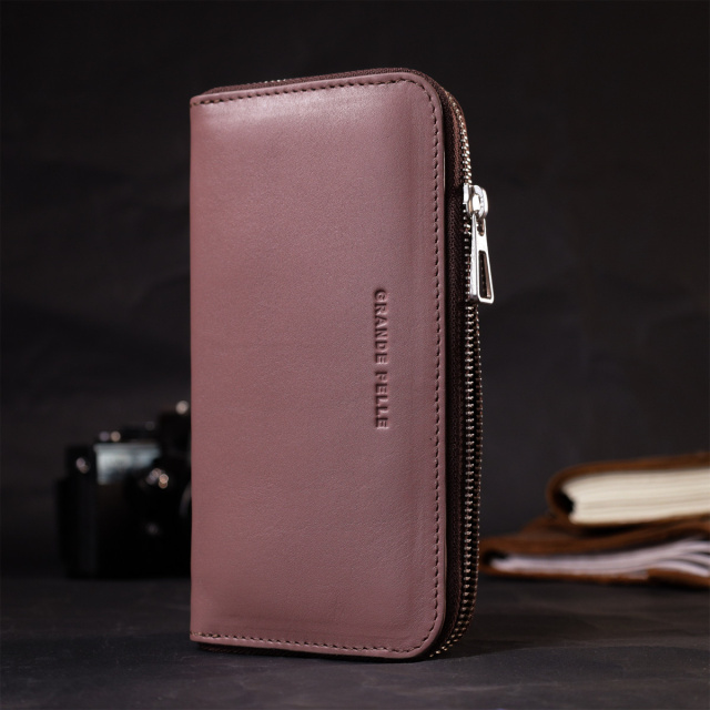 - відділення на блискавці; Зручний та місткий гаманець на блискавці із натуральної високоякісної шкіри. Має гарний пудровий колір та гладку фактуру. Внутрішнє наповнення добре продумане та практичне, в ньому розмістяться купюри, монети, різні картки і навіть смартфон. Запакований цей гаманець у фірмову картонну коробку з логотипом бренду. Ми впевнені, що вироби української фірми Grande Pelle, нікого не залишать байдужими, і Ви ще неодноразово повернетесь за цими якісними шкіряними аксесуарами. ОПЛАТА та ДОСТАВКА : накладний платіж з передоплатою 200 грн.Терміни відправлення : 1-3 робочих днів