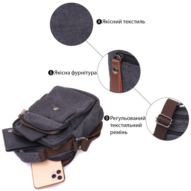 - незнімний текстильний ремінець, що регулюється. Компактна сумка із міцного текстилю на кожен день. Модель дуже функціональна та універсальна, відмінно підійде для автомобілістів. Виріб доповнений якісною фурнітурою та щільною текстильною підкладкою. Сумка дуже практична за рахунок того, що має два відділення. Така сумка буде ідеальним варіантом для кожного дня. Модель дійсно дуже практична та універсальна. ОПЛАТА та ДОСТАВКА : накладний платіж з передоплатою 200 грн.Терміни відправлення : 1-3 робочих днів