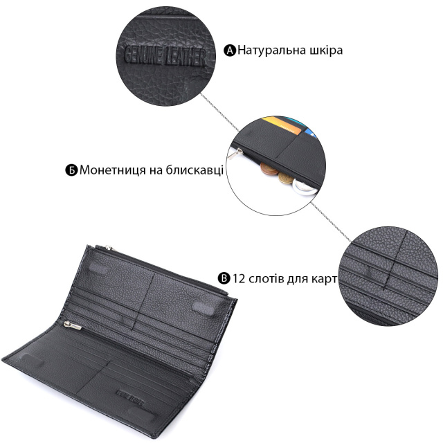 - усередині розташовано два великі відділення для купюр по всій довжині;