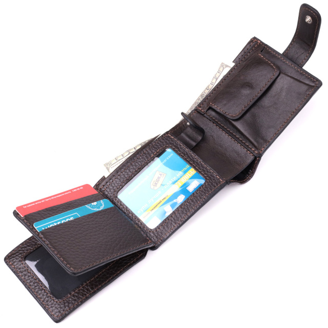 - закривається на хлястик з кнопкою. Містке портмоне для чоловіків з натуральної шкіри флотар зі вставками з гладкої шкіри. Портмоне у класичному стилі завжди залишається на піку популярності. Дизайн гаманця продуманий так, щоб він був максимально зручним та містким, при цьому залишаючись компактним. Аксесуар закривається на шкіряний хлястик із кнопкою. На лицьовій стороні, в правому нижньому кутку, розташований металевий логотип компанії виробника, що є запорукою високої якості. Виріб виконаний у коричневому кольорі з акуратним рядком, що підкреслює його елегантний зовнішній вигляд. Модель упакована у фірмову картонну коробку, яка може замінити подарункову упаковку. Портмоне стане чудовим рішенням для подарунка близькій людині. ОПЛАТА та ДОСТАВКА : накладний платіж з передоплатою 200 грн.Терміни відправлення : 1-3 робочих днів