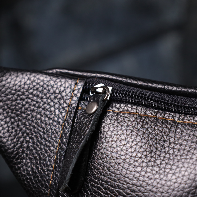 - стильна прошивка деталей коричневою ниткою підкреслює вінтажний характер аксесуара. Сумка-бананка із натуральної шкіри флотар у чорному кольорі — стильний та надійний супутник на кожен день. Ця чоловіча бананка від українського бренду виконана з високоякісної натуральної шкіри з виразною зернистою фактурою, яка називається - флотар, вона відрізняється м'якістю, міцністю та стійкістю до зносу. Класичний чорний колір надає аксесуару універсальності та робить його актуальним у будь-якому образі — від ділового до повсякденного. Текстура шкіри флотар надає сумці благородного і сучасного вигляду, а також відмінно маскує дрібні подряпини, зберігаючи охайний зовнішній вигляд навіть при активній експлуатації. Незважаючи на компактні розміри, сумка дуже функціональна: вона оснащена основним відділенням на блискавці та зовнішньою кишенею, що ідеально підходять для зберігання смартфона, документів, ключів та інших дрібниць. Регульований текстильно-шкіряний ремінь дозволяє носити бананку на поясі, забезпечуючи свободу рухів та комфорт протягом дня. Ця модель ідеально підійде для чоловіків, які ведуть активний спосіб життя, цінують зручність та стриманий стиль.