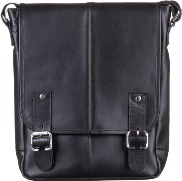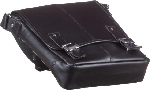 Країна виробництва: Україна; Зручна шкіряна чоловіча сумка високої якості. Виріб виконаний зі шкіри чорного кольору. Шкіра добротна, приємна на дотик. Колір фурнітури: срібло. Сумка акуратно прошита надміцною ниткою чорного кольору. На задній зовнішній стороні аксесуара розташоване відділення на блискавці. Дана модель носитися через плече. Плечовий ремінь виконаний в комбінації натуральної шкіри і міцного текстильного матеріалу. Сумка закривається за допомогою клапана і 2-х шкіряних хлястиків на магнітних кнопках, а також блискавкою. Під клапаном знаходиться містка накладна кишеня. Підкладка виконана з міцного текстильного матеріалу чорного кольору.