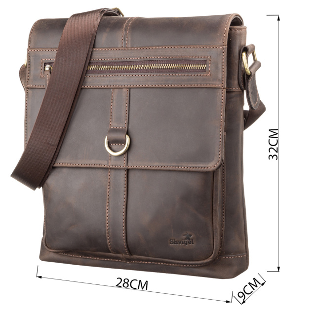 Країна виробник: Україна. Багатофункціональна чоловіча сумка зі зручною ручкою і клапаном на магнітах, вертикальна. Аксесуар виконаний з натуральної вінтажної шкіри, характерними ознаками якої є: неоднорідність забарвлення і потертості, які надають виробу вишуканого, індивідуального виду. Розмір сумки дозволяє вмістити документи формату А4, планшет, телефон і інші дрібниці. Всередині сумка розділена відділенням на блискавці на два відділи. В одному відділенні кишеня з ущільненої перегородкою.