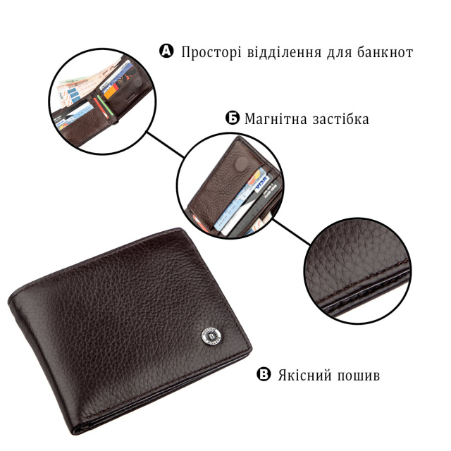 - чоловічий гаманець з натуральної шкіри на магніті;