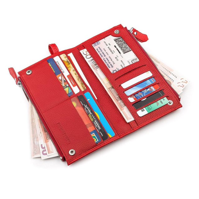 1 накладна кишеня на зовнішній лицьовій стороні. Даний гаманець виконаний в стилі мінімалізму, маючи компактні розміри з фіксацією на дві металеві кнопки. Внутрішній простір представлено місткими відділеннями для банкнот і слотами для платіжних карт. Для ще більшої зручності є дві прилеглих кишеньки на блискавці і один на кнопці. На лицьовій стороні знаходиться фірмовий оновлений знак бренду, а матеріал виготовлення натуральна шкіра, що має відмінну міцність і зносостійкість. Цей та багато інших аксесуарів можна придбати за хорошими цінами в нашому інтернет-магазині. ОПЛАТА та ДОСТАВКА : накладний платіж з передоплатою 200 грн.Терміни відправлення : 1-3 робочих днів