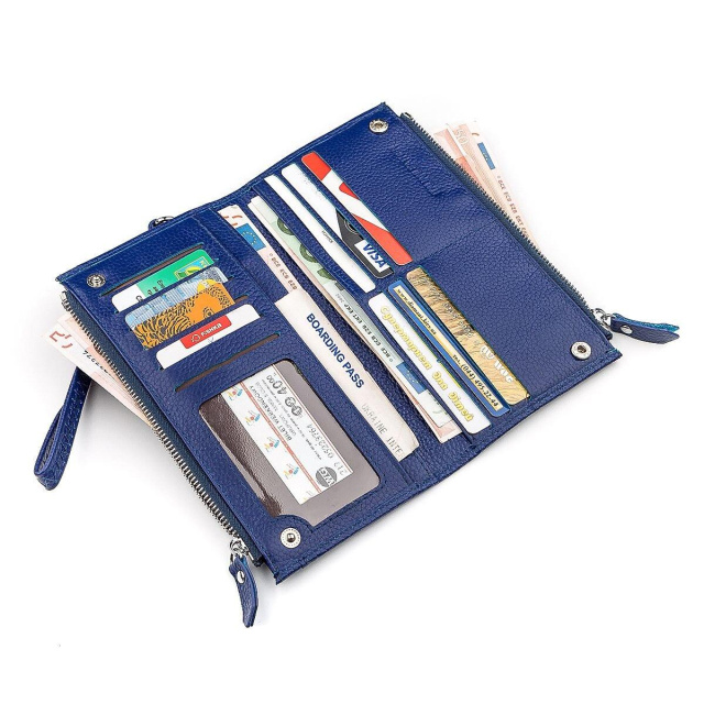 одна зовнішня кишеня. Шанувальницям стриманих і мінімалістичні дизайнів дуже сподобається даний гаманець, який крім компактності, володіє відмінною функціональністю. Модель виготовляється з натуральної фактурної шкіри. Портмоне відрізняється практичністю при будь-яких завданнях, якщо це звичайна прогулянка або поїздка на ділову зустріч. Особливо сподобається жінкам синій колір, який своєю яскравістю і привабливістю виділить індивідуальність кожної дівчини. ОПЛАТА та ДОСТАВКА : накладний платіж з передоплатою 200 грн.Терміни відправлення : 1-3 робочих днів