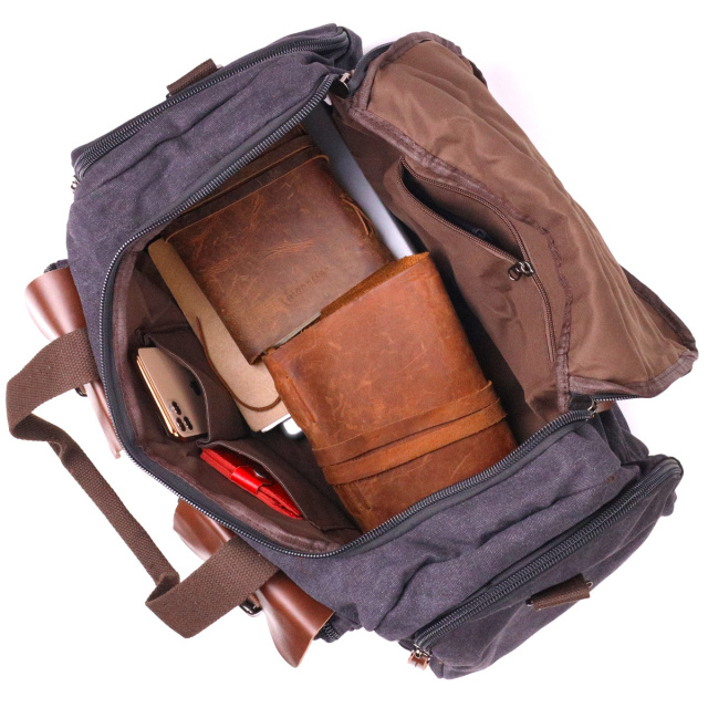 - захисні металеві ніжки на дні сумки. Дорожня містка сумка чорного кольору. Сама по собі сумка досить легка, що є великим плюсом. Виріб має підкладку з тканини коричневого кольору та металеві ніжки для захисту дна сумки. У комплекті знімний ремінець на плече. З текстильною сумкою буде зручно вирушити у відпустку, відрядження. Текстильна сумка відмінне та бюджетне рішення для вашого комфорту. ОПЛАТА та ДОСТАВКА : накладний платіж з передоплатою 200 грн.Терміни відправлення : 1-3 робочих днів