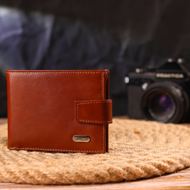 - гаманець упакований у фірмову коробочку. Невелике чоловіче портмоне з натуральної гладкої шкіри. Аксесуар має одне основне відділення з перегородкою, в якому розміщуються купюри всіх номіналів, дванадцять кишень для карток, чотири з яких під сіточкою. Закривається аксесуар хлястиком на кнопку. Колір фурнітури – срібло. Ви легко зможете помістити його в кишеню штанів чи маленьку сумку. Запакований гаманець картонну коробку. Шкіряний гаманець є чудовим подарунком для рідних та близьких людей. ОПЛАТА та ДОСТАВКА : накладний платіж з передоплатою 200 грн.Терміни відправлення : 1-3 робочих днів