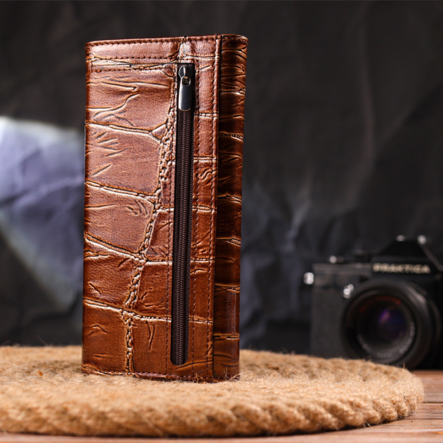 - гаманець упакований у фірмову коробочку. Фактурний жіночий гаманець з натуральної шкіри з крупним тисненням під крокодила. Аксесуар має три широкі відділення для купюр, з двома перегородками, одна перегородка закривається на блискавку, містку монетницю зовні, чотири приховані кишені та шість кишень для карток. Закривається аксесуар клапаном на кнопку. Якщо Ви хочете порадувати себе та здивувати близьких, то неодмінно купуйте шкіряні аксесуари в нашому магазині, якість і ціна Вас однозначно порадує. ОПЛАТА та ДОСТАВКА : накладний платіж з передоплатою 200 грн.Терміни відправлення : 1-3 робочих днів