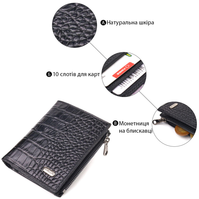 - гаманець упакований у фірмову коробочку. Компактний гаманець унісекс компактного розміру з натуральної шкіри, з тисненням під крокодила. Аксесуар має відділення для купюр, монетницю, що закривається на блискавку, дві приховані кишені та десять осередків для карток, один під сіточкою. Закривається аксесуар у два складання на кнопку. Якісний шкіряний аксесуар завжди вважався показником смаку та достатку, саме такі вироби представлені у нашому магазині, у нас кожен знайде щось для себе. ОПЛАТА та ДОСТАВКА : накладний платіж з передоплатою 200 грн.Терміни відправлення : 1-3 робочих днів