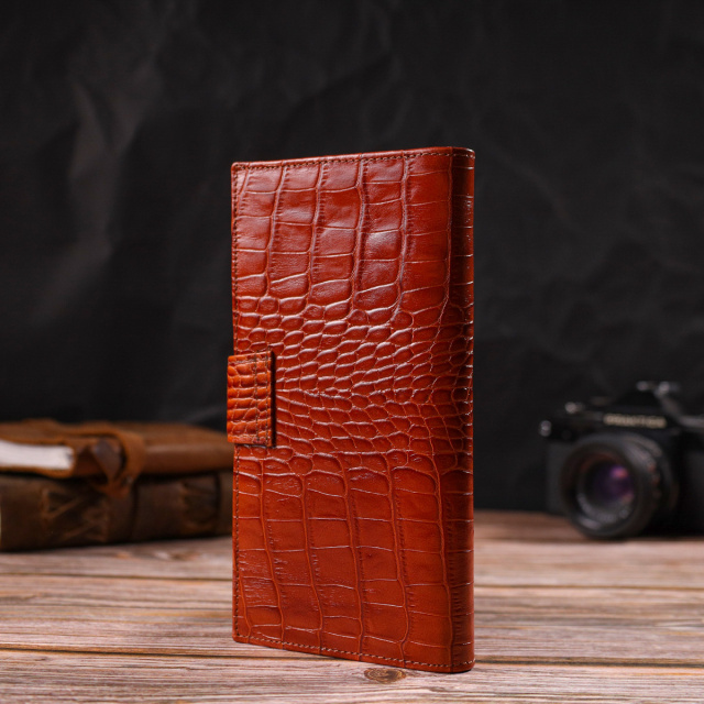 - гаманець упакований у фірмову коробочку. Дуже красивий вертикальний чоловічий гаманець із натуральної фактурної шкіри із тисненням під крокодила. Аксесуар має одне основне відділення, в яке розміщуються купюри всіх номіналів, п'ятнадцять кишень для карток, кишеня під сіточкою для документів, дві прилеглі кишені та монетницю. Закривається аксесуар навпіл шкіряним хлястиком на кнопку. Запакований гаманець картонну коробку. ОПЛАТА та ДОСТАВКА : накладний платіж з передоплатою 200 грн.Терміни відправлення : 1-3 робочих днів