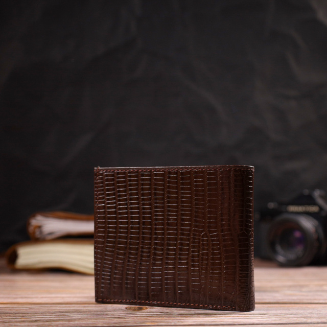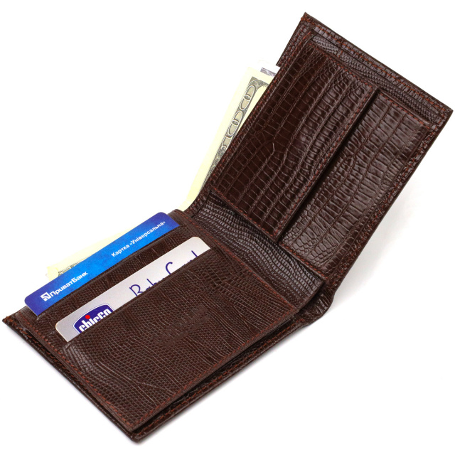 - гаманець упакований у фірмову коробочку. Цікавий чоловічий гаманець із натуральної фактурної шкіри, з тисненням. Аксесуар має одне основне відділення з тканинною перегородкою, в яке поміщаються купюри всіх номіналів, шість кишень для карток, кишеня під сіточкою для пропуску, одна прихована кишеня і монетницю. Закривається аксесуар навпіл, без застібки. На лицьовій стороні, у правому нижньому куті металевий логотип компанії виробника. Купуючи шкіряний аксесуар цієї фірми, собі чи на подарунок, будьте певні, що він прослужить Вам не один рік. ОПЛАТА та ДОСТАВКА : накладний платіж з передоплатою 200 грн.Терміни відправлення : 1-3 робочих днів