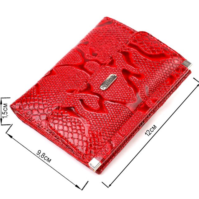 - гаманець упакований у фірмову коробочку. Лакований жіночий гаманець середнього розміру з натуральної шкіри з тисненням під рептилію. Аксесуар має одне основне відділення з тканинною перегородкою в яке поміщаються купюри всіх номіналів, п'ять кишень для карток (одна під сіточкою), дві приховані кишені та монетницю. Закривається аксесуар у два складання на кнопку. Купуючи шкіряний аксесуар цієї фірми, собі чи на подарунок, будьте певні, що він прослужить Вам не один рік. ОПЛАТА та ДОСТАВКА : накладний платіж з передоплатою 200 грн.Терміни відправлення : 1-3 робочих днів
