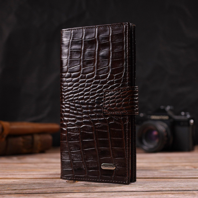 - гаманець упакований у фірмову коробочку. Зручний чоловічий гаманець із натуральної фактурної шкіри з тисненням під крокодила. Аксесуар має одне основне відділення для купюр усіх номіналів, одинадцять осередків для карток, кишеню під сіточкою для пропуску та дві приховані кишені. Закривається аксесуар навпіл хлястиком на кнопку. На лицьовій стороні, у правому нижньому куті металевий логотип компанії виробника. Купуючи шкіряний аксесуар цієї фірми, собі або на подарунок, будьте певні, що він прослужить Вам не один рік. ОПЛАТА та ДОСТАВКА : накладний платіж з передоплатою 200 грн.Терміни відправлення : 1-3 робочих днів