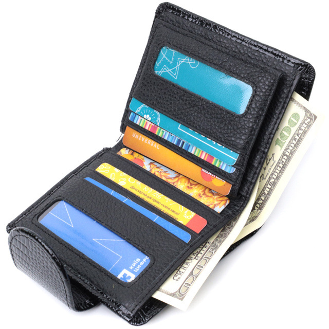 - закривається у дві додавання хлястиком на магніт. Практичний гаманець для жінок середнього розміру із високоякісної лакованої шкіри із тисненням під рептилію. Має все необхідне, щоб стати Вам незамінним аксесуаром у повсякденному житті. Ви легко помістите в нього паперові купюри, монети, документи, картки. На лицьовій стороні, у правому нижньому кутку розташований металевий логотип виробника, що є запорукою якості виробу. Запакований аксесуар у білу щільну картонну коробку з фірмовим логотипом. ОПЛАТА та ДОСТАВКА : накладний платіж з передоплатою 200 грн.Терміни відправлення : 1-3 робочих днів
