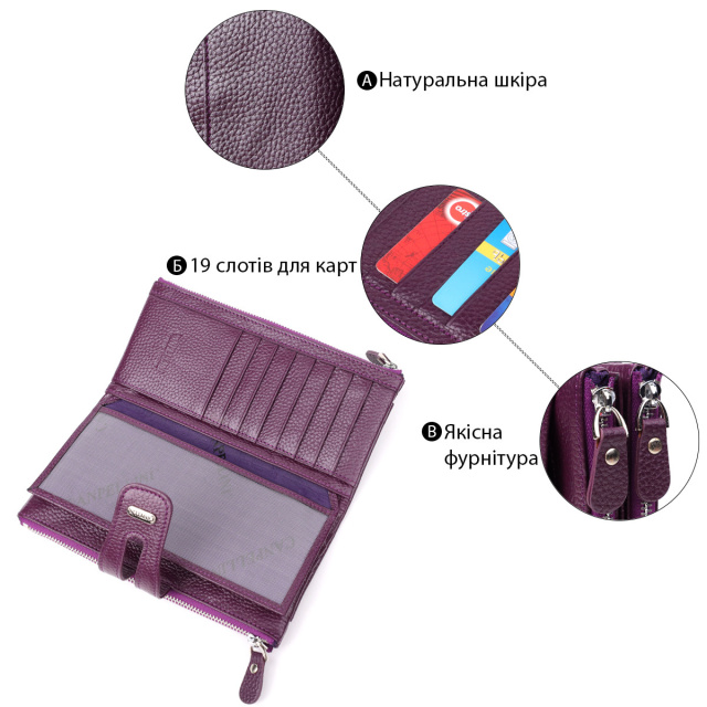 Країна виробник: Туреччина Особливості: два відділення на блискавці; дві зовнішні прилеглі кишені відкритого типу; 19 осередків для карток; одна кишеня і один осередок під сіточкою; три внутрішні прилеглі кишені; закривається хлястиком на кнопку; металевий логотип бренду по центру на хлястиці. Елегантний шкіряний гаманець із натуральної шкіри турецького виробництва поєднує місткість та зручність. Безліч осередків для карт та документів, відділення на блискавці та кишені дозволяють органічно розмістити все необхідне. Стильний дизайн із металевим логотипом та фурнітурою під срібло підкреслює сучасний та витончений характер аксесуара. ОПЛАТА та ДОСТАВКА : накладний платіж з передоплатою 200 грн.Терміни відправлення : 1-3 робочих днів