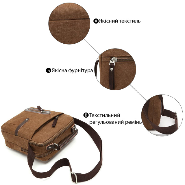 - текстильний регульований незнімний ремінець на плече;