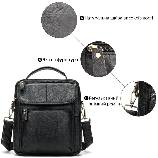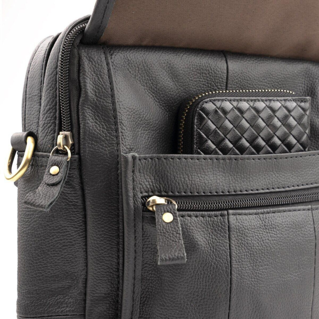 - текстильний ремінець на плече чорного кольору зі шкіряною вставкою (знімний); Cолідная чоловіча сумка з натуральної шкіри високої якості. Усередині аксесуара коричнева текстильна підкладка. Модель з широким функціоналом. Сумка не вибаглива в догляді і довго носиться. Буде хорошим подарунком для близької людини. Сумка прошита по краях чорною ниткою. Аксесуар можна носити як в руках, так і на плечі. ОПЛАТА та ДОСТАВКА : накладний платіж з передоплатою 200 грн.Терміни відправлення : 1-3 робочих днів