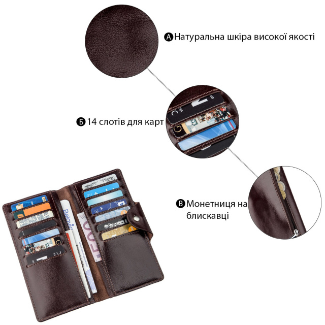 - 14 відділень для пластикових карток.