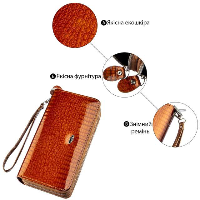 Гаманець пошитий з екошкіри і має зручний функціонал. Аксесуар виконаний з якісного шкірзамінника і доповнений міцною фурнітурою. За дуже приємну вартість ви отримуєте чудовий аксесуар коричневого кольору. Дизайн гаманця продуманий до дрібниць, і ми впевнені, що вам буде дуже зручно.