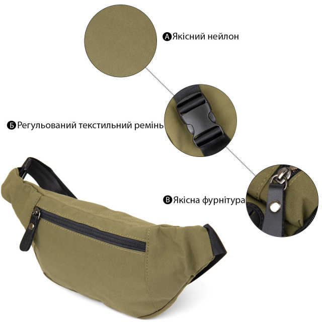 Компактна бананка з нейлону зеленого кольору. Аксесуар має невеликий розмір і практичний функціонал. Сумка дуже легка і зручна. З бананкою всі ваші особисті речі будуть під рукою і перед вашими очима. Аксесуар доповнено якісною фурнітурою і щільною підкладкою. Бананка підійде як для чоловіків так і для жінок. Виробництво - фабричний Китай високої якості. З такою сумкою зручно також ходити на заняття спортом або подорожувати. На нашому сайті виріб є в різних кольорах. Рекомендуємо вам бананку в якості зручної і бюджетної сумки. ОПЛАТА та ДОСТАВКА : накладний платіж з передоплатою 200 грн.Терміни відправлення : 1-3 робочих днів