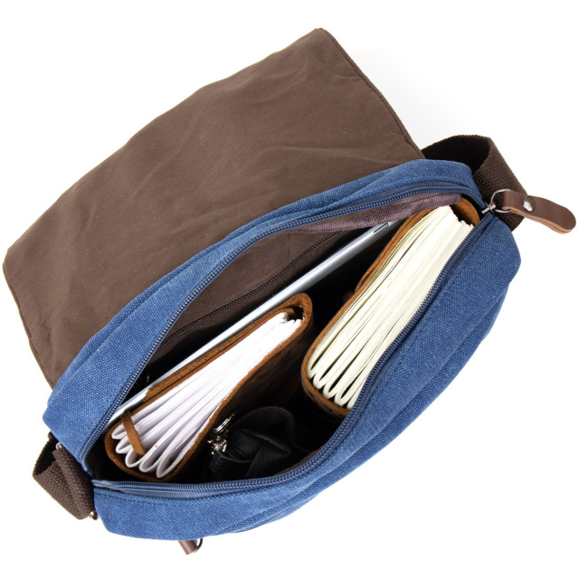 Невелика сумка почтальонка в універсальному синьому кольорі. Аксесуар доповнено необхідним функціоналом. Закривається сумка на клапан з магнітними кнопками. Всередині - щільна текстильна підкладка. Сумку зручно носити на плечі. Текстильний ремінець не знімається. Сумка ідеальний варіант на кожен день за бюджетною вартістю. ОПЛАТА та ДОСТАВКА : накладний платіж з передоплатою 200 грн.Терміни відправлення : 1-3 робочих днів