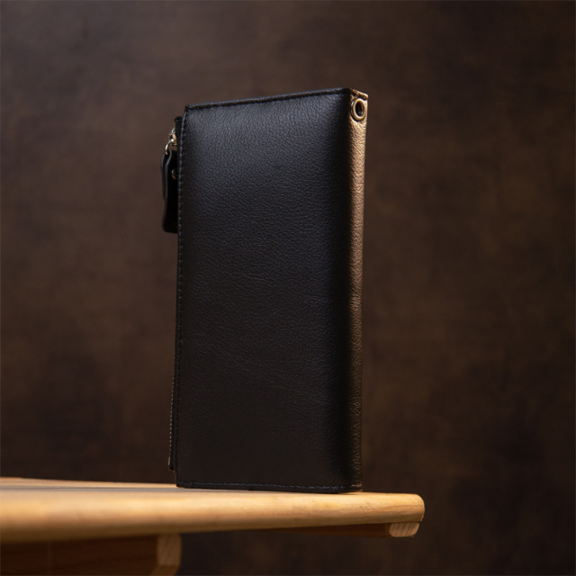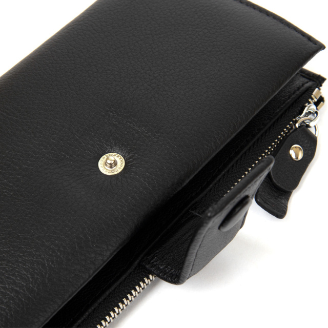 Гарний і функціональний гаманець-клатч в класичному чорному кольорі. Виконаний з натуральної шкіри високої якості, має матову зернисту фактуру і дуже приємний на дотик, що важливо при щоденному використанні. Всередині має багате наповнення у вигляді безлічі кишень і відділень, також є зовнішня монетниця на блискавці. Упакований клатч в тверду фірмову упаковку. ОПЛАТА та ДОСТАВКА : накладний платіж з передоплатою 200 грн.Терміни відправлення : 1-3 робочих днів