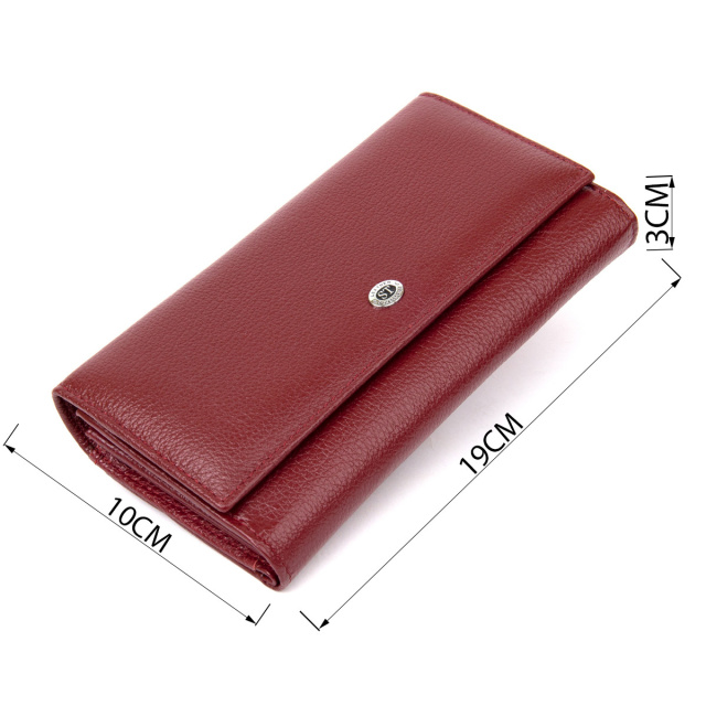 Шикарний жіночий гаманець в красивому темно-червоному кольорі. Виконаний з добротної високоякісної шкіри в зернистій фактурі. Дизайн даного виробу продуманий до дрібниць, тому гаманець обов'язково стане улюбленою річчю своєї господині. Відмінною рисою моделі є наявність додаткового відділення для карток, яке закривається на регульовану кнопку. Упакований в фірмову коробку. ОПЛАТА та ДОСТАВКА : накладний платіж з передоплатою 200 грн.Терміни відправлення : 1-3 робочих днів
