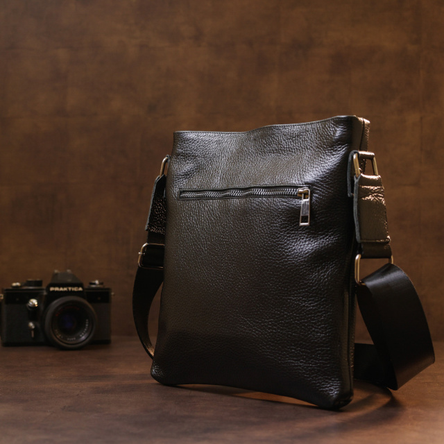 - текстильний ремінь для перенесення на плечі. Стильна чоловіча сумка з ременем через плече із натуральної шкіри високої якості. Має універсальний чорний колір, тому підійде під одяг будь-якого стилю та кольору. Дана модель має містке основне відділення та дві кишені на зовнішній стороні. Фактура аксесуара - зерниста з невеликим переливом. ОПЛАТА та ДОСТАВКА : накладний платіж з передоплатою 200 грн.Терміни відправлення : 1-3 робочих днів