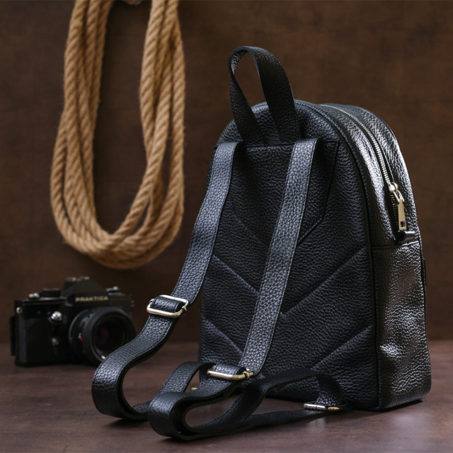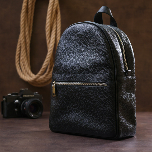 - ручка для перенесення рюкзака в руках. Практичний жіночий рюкзак із натуральної шкіри високої якості виконання. Має зернисту фактуру та універсальний чорний колір, тому підійде під будь-який одяг. Основне відділення дуже містке та просторе, на зовнішній стороні передбачена невелика кишеня на блискавці. ОПЛАТА та ДОСТАВКА : накладний платіж з передоплатою 200 грн.Терміни відправлення : 1-3 робочих днів