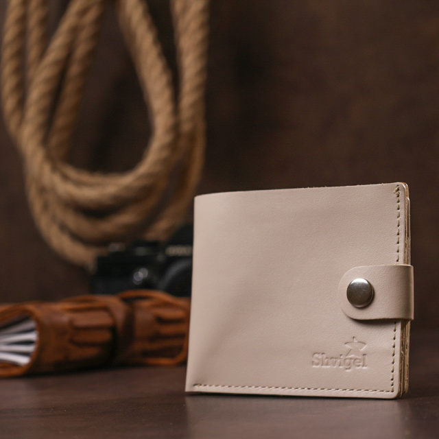 - 4 слоти для карток. Невелике практичне портмоне від українського виробника в красивому бежевому кольорі та гладкій фактурі. Усередині є просторе відділення для купюр та кишеньки для пластикових карток. Закривається аксесуар за допомогою шкіряного хлястика на кнопці, що дуже зручно. Дана модель відмінно підійде на подарунок дорогій людині на будь-яке свято. ОПЛАТА та ДОСТАВКА : накладний платіж з передоплатою 200 грн.Терміни відправлення : 1-3 робочих днів