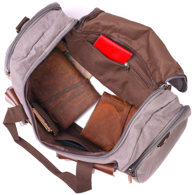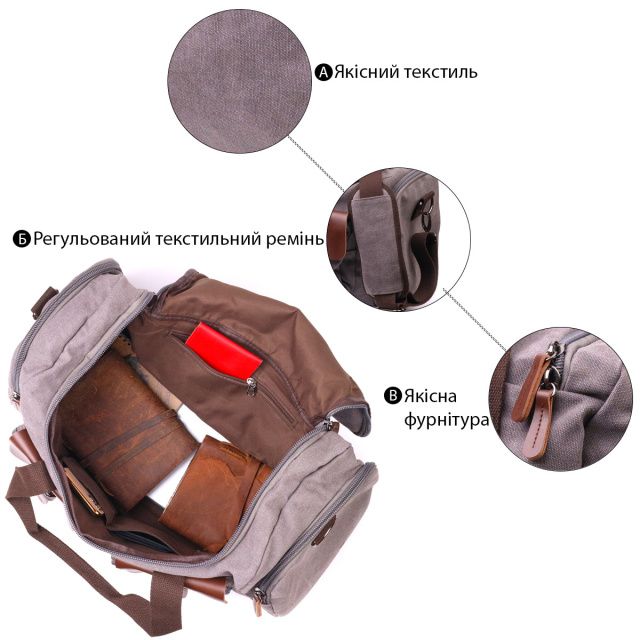 - захисні металеві ніжки на дні сумки. Велика сумка для подорожей із міцного текстилю у сірому кольорі. Сама по собі сумка досить легка, що є великим плюсом. Виріб має підкладку з тканини коричневого кольору та металеві ніжки для захисту дна сумки. У комплекті знімний ремінець на плече. З текстильною сумкою буде зручно вирушити у відпустку, відрядження. Текстильна сумка відмінне та бюджетне рішення для вашого комфорту. ОПЛАТА та ДОСТАВКА : накладний платіж з передоплатою 200 грн.Терміни відправлення : 1-3 робочих днів