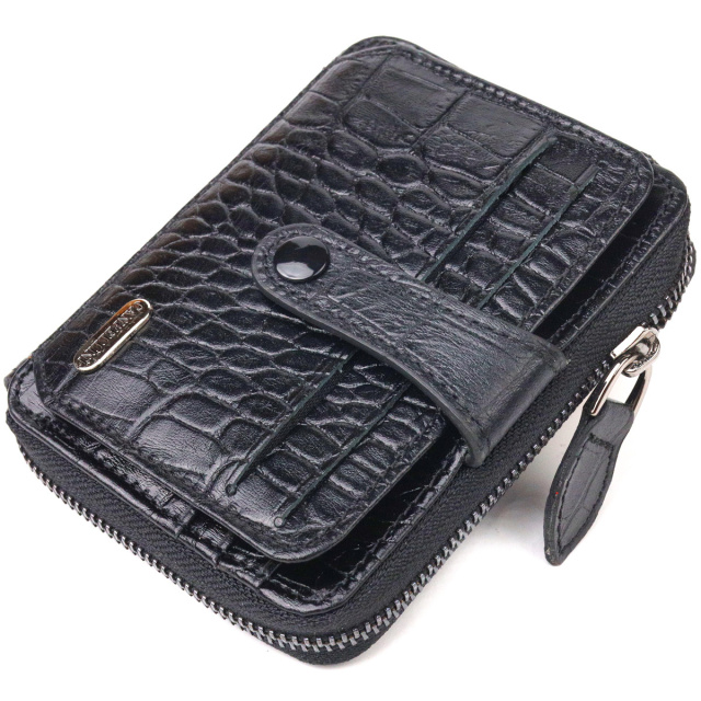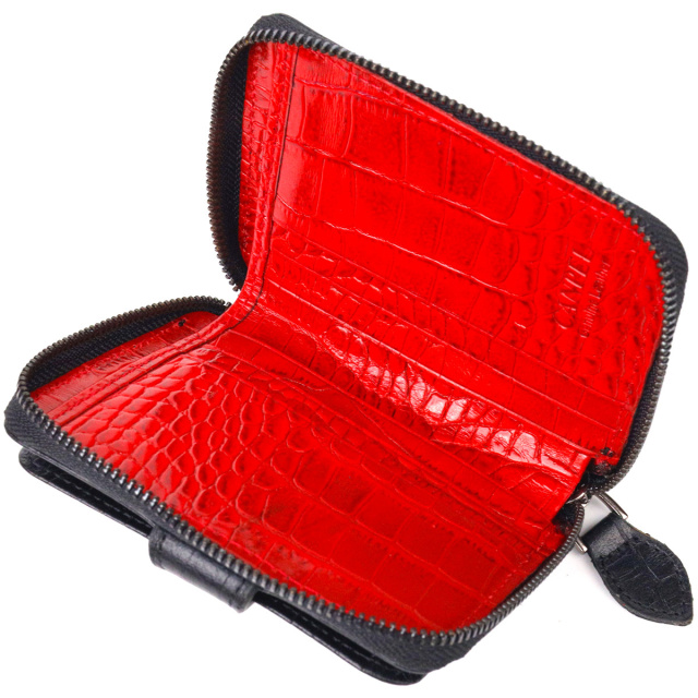 - гаманець упакований у фірмову коробочку. Цікавий гаманець для жінок з натуральної фактурної шкіри з тисненням під крокодила. Аксесуар має одне основне відділення, в яке поміщаються купюри всіх номіналів, одинадцять кишень для карток, одна з яких під сіточкою, блок для карт із зовнішнього боку, а також кишеня для пропуску під сіточкою з лицьового боку. Закривається аксесуар на блискавку, а блок для карток хлястиком на кнопку. Колір фурнітури – темне срібло. Шкіряний гаманець є дивовижним подарунком для дружини, дівчини, подруги. ОПЛАТА та ДОСТАВКА : накладний платіж з передоплатою 200 грн.Терміни відправлення : 1-3 робочих днів
