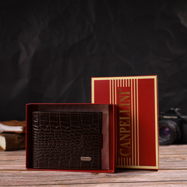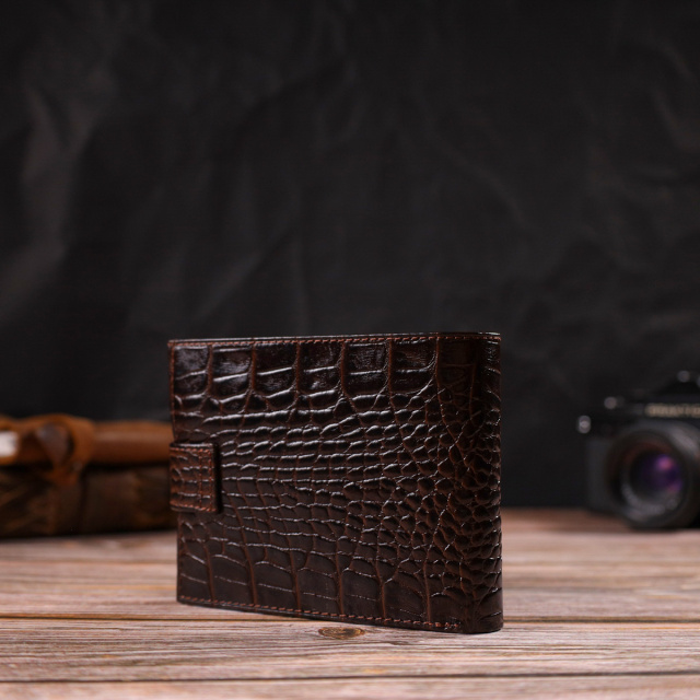 - гаманець упакований у фірмову коробочку. Надійне чоловіче портмоне середнього розміру з натуральної шкіри з тисненням під крокодила. Аксесуар має основне відділення для купюр з кишенею-перегородкою на блискавці, три осередки для карток, дві кишені під сіточкою, дві прилеглі кишені та монетницю. Гаманець складається навпіл, закривається хлястиком на кнопку. На лицьовій стороні в правому нижньому кутку розташований металевий логотип компанії виробника. Багатофункціональний чоловічий гаманець з дуже міцної шкіри чудовий вибір подарунка для солідного чоловіка. ОПЛАТА та ДОСТАВКА : накладний платіж з передоплатою 200 грн.Терміни відправлення : 1-3 робочих днів