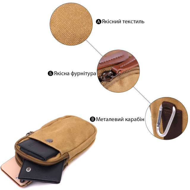 - петелька на пояс. Чоловіча вертикальна сумка-чохол на пояс пошита із міцного текстилю із застосуванням якісної фурнітури. Виріб має весь необхідний функціонал, щоб носити її щодня і щоб усі необхідні речі завжди були під рукою. Сумку можна повісити на лямки ременя за допомогою карабіну, а також протягнути в петельку пояс. Маленька текстильна сумка - ідеальний варіант як на літо, так і на зиму. Сумочка буде ідеальним подарунком для ваших близьких. ОПЛАТА та ДОСТАВКА : накладний платіж з передоплатою 200 грн.Терміни відправлення : 1-3 робочих днів