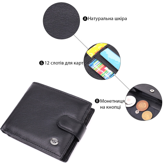 - 1 кишеня для монет на кнопці під клапаном;