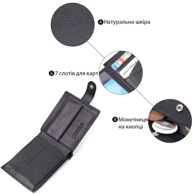 - 1 кишеня для монет, що закривається клапаном на магніт;