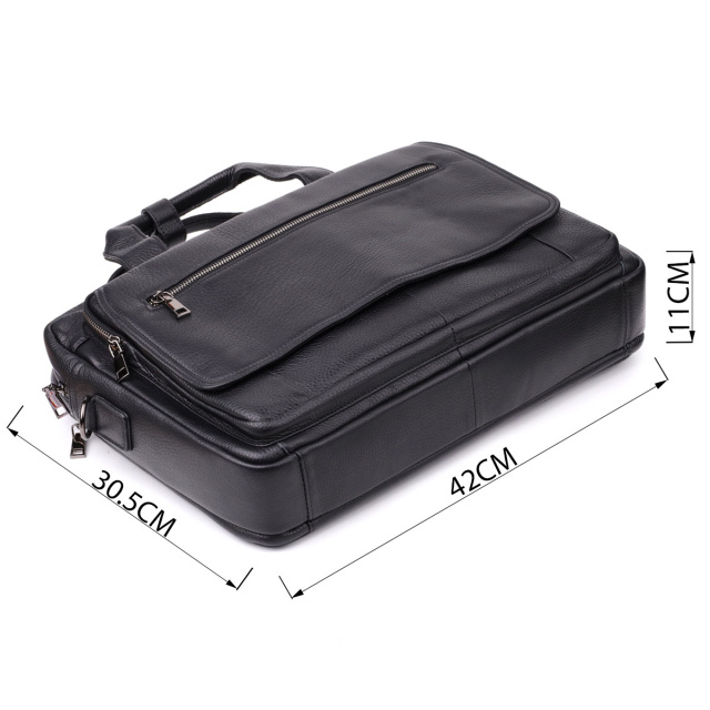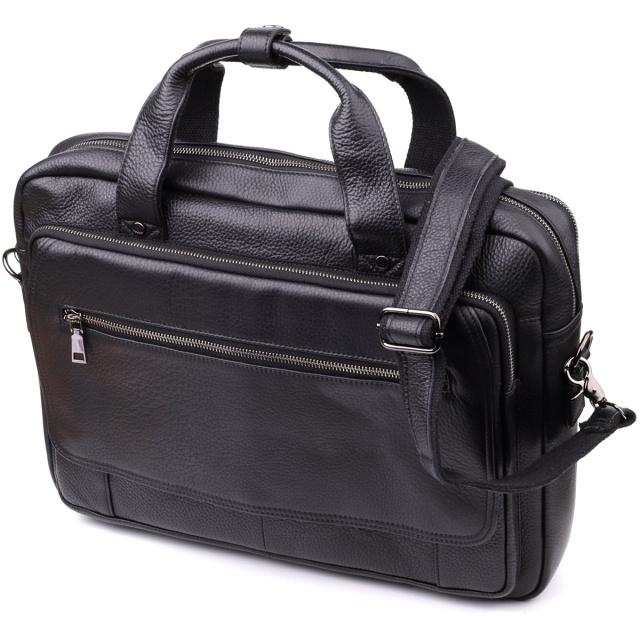 - знімний регульований ремінець на плече. Стильний та функціональний чоловічий портфель з натуральної шкіри – ідеальний вибір для тих, хто цінує зручність, якість та лаконічний дизайн. Ця модель створена для повсякденного використання в діловому середовищі і чудово справляється із завданнями зберігання ноутбука, документів та необхідних аксесуарів. Портфель оснащений одним основним відділенням на блискавці. Усередині знаходиться спеціальна кишеня, що фіксується на липучку, призначена для ноутбука діагоналлю до 15 дюймів - надійний захист техніки під час перенесення. Фронтальна частина виробу обладнана трьома зовнішніми кишенями: накладна кишеня на блискавці для великих предметів, вбудована горизонтальна кишеня на блискавці для дрібниць, а також додаткова кишеня під клапаном ідеальна для предметів, до яких потрібний швидкий доступ. На тильній стороні розташована ще одна кишеня на блискавці, яка підходить для зберігання документів, блокнотів або смартфона. Фурнітура у кольорі темного срібла підкреслює стриманий та сучасний стиль моделі. Для зручного перенесення передбачені дві міцні шкіряні ручки, а також знімний ремінець, що регулюється, що дозволяє носити сумку на плечі або через плече. Ця модель чудово підійде як для ділових поїздок, так і для повсякденної роботи – практичне, містке та елегантне рішення на кожен день. ОПЛАТА та ДОСТАВКА : накладний платіж з передоплатою 200 грн.Терміни відправлення : 1-3 робочих днів