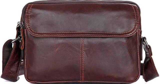 Розміри (ШхВхГ, см): 23.5х17 х5. Відмінна чоловіча сумка коричневого кольору. Аксесуар виконаний з натуральної високоякісної шкіри, яка відрізняється легким, ледь помітним блиском. Колір фурнітури: темне срібло. На лицевій стороні розташована невелика кишеня під клапаном на магнітах. На задній зовнішній стороні знаходиться вмістке відділення на блискавці. Сумка має три автономних відділення, які закриваються на блискавки, всередині одного з них знаходяться дві кишені (одина з них на блискавці). Підкладка виконана з міцного текстильного матеріалу коричневого кольору. ОПЛАТА та ДОСТАВКА : накладний платіж з передоплатою 200 грн.Терміни відправлення : 1-3 робочих днів