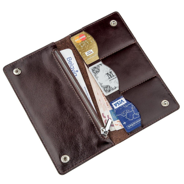- 3 слота для пластикових карток. Солідний і м'який шкіряний гаманець. Аксесуар створений для чоловіків, які цінують стиль і комфорт. Виріб прошито по краях рівним рядком. Доповнює аксесуар тиснений логотип бренду на лицьовій стороні аксесуара. Виріб закривається на дві кнопки зверху і знизу. Такий гаманець стане прекрасним помічником для будь-якого чоловіка. ОПЛАТА та ДОСТАВКА : накладний платіж з передоплатою 200 грн.Терміни відправлення : 1-3 робочих днів