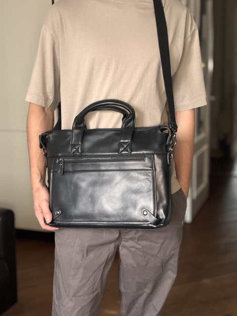 Розміри: 39.5 на 30 на 8 см. Класична горизонтальна сумка чорного кольору. Сумку можна носити як з допомогою плечового ременя так і в руках. Особливості: