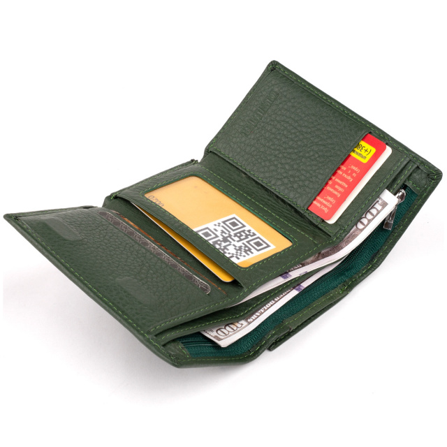 закривається на магніт. Стильне універсальне портмоне матового зеленого кольору. Портмоне стандартного розміру з натуральної шкіри найвищої якості. Модель зручно лежить в руці, поміщається в сумку або кишеню. Всередині: просторі кишені для карт, купюр і інших дрібниць. Автономна монетниця на блискавці на тильній стороні на два відділення. Саме портмоне закривається на магніт. Внутрішнє оздоблення - щільний текстиль. Портмоне приємне на дотик і має запах натуральної шкіри. Виконано в гладкій шкірі і прослужить вам далеко не один рік. Виріб зовсім невибагливий в догляді. Даний аксесуар стане найкращим подарунком і головне необхідним, як для чоловіка, так і для жінки. У комплекті йде фірмова упаковка. ОПЛАТА та ДОСТАВКА : накладний платіж з передоплатою 200 грн.Терміни відправлення : 1-3 робочих днів