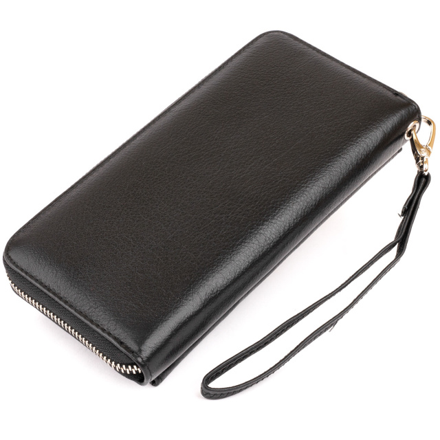 Класичний чорний місткий гаманець з натуральної шкіри. Модель м'яка і еластична з двох автономних частин (одна для купюр, друга - для карт). Усередині модель виготовлена з міцного текстилю в поєднанні зі шкірою. Виріб можна також носити на ремінці-петельці на зап'ясті. Дуже практичний гаманець не залишить байдужою жодну жінку. Класичний чорний колір підходить під все тому є дуже універсальним. При покупці гаманець упакований в картонну фірмову коробку. ОПЛАТА та ДОСТАВКА : накладний платіж з передоплатою 200 грн.Терміни відправлення : 1-3 робочих днів