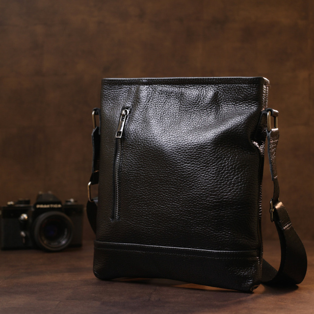 - текстильний ремінь для перенесення на плечі. Стильна сумка для чоловіків в універсальному чорному кольорі із зернистою фактурою. Матеріал виготовлення – натуральна шкіра високої якості та високою стійкістю до зношування. Має містке відділення на блискавці та дві зовнішні кишені. Така сумка прикрасить гардероб будь-якого чоловіка. ОПЛАТА та ДОСТАВКА : накладний платіж з передоплатою 200 грн.Терміни відправлення : 1-3 робочих днів