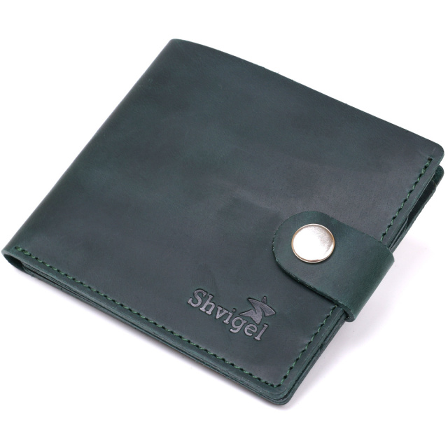 - монетниця на кнопці. Цікаве портмоне унісекс у темно-зеленому кольорі, що дуже модно цього сезону. Матеріал – натуральна шкіра високого класу з покращеними показниками міцності. Усередині є просторе відділення для купюр, слоти для кредитних та візитних карток та монетниця на кнопці. Фактура гаманця - гладка і дуже приємна на дотик. ОПЛАТА та ДОСТАВКА : накладний платіж з передоплатою 200 грн.Терміни відправлення : 1-3 робочих днів