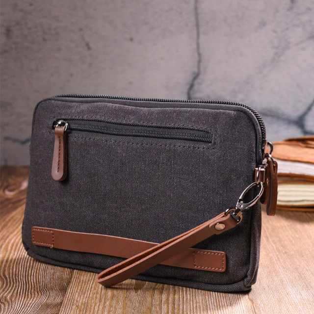 - шкіряний знімний кистьовий ремінь. Сучасна текстильна барсетка в чорному кольорі має класичний і зручний дизайн з практичним функціоналом. Аксесуар має одне основне відділення, дві внутрішні кишені, одна з яких на блискавці, ущільнена одна стінка, знімний кистьовий ремінь. У барсетку поміститься чимало речей, а наявність кишень допоможе вам ідеально їх розкласти. У поєднанні з якісною фурнітурою та міцною підкладкою барсетка прослужить Вам не один рік. Виріб стане чудовим подарунком для будь-якого чоловіка. ОПЛАТА та ДОСТАВКА : накладний платіж з передоплатою 200 грн.Терміни відправлення : 1-3 робочих днів