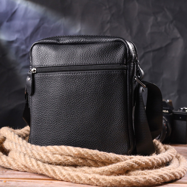 - регульований текстильний ремінець на плече. Сучасна чоловіча сумка середнього розміру із натуральної зернистої шкіри. Модель, яка ідеально підійде на кожен день. В аксесуарі одне основне відділення та чотири кишені різних розмірів, сумку зручно носити на плечі. У сумку з легкістю помістяться всі необхідні речі. З таким аксесуаром усі Ваші речі будуть в порядку, з ним також буде зручно ходити на роботу чи зустрічі. Доповнено виріб якісною фурнітурою, темно-сріблястого кольору. Сумка стане чудовим подарунком для близької людини. ОПЛАТА та ДОСТАВКА : накладний платіж з передоплатою 200 грн.Терміни відправлення : 1-3 робочих днів