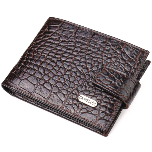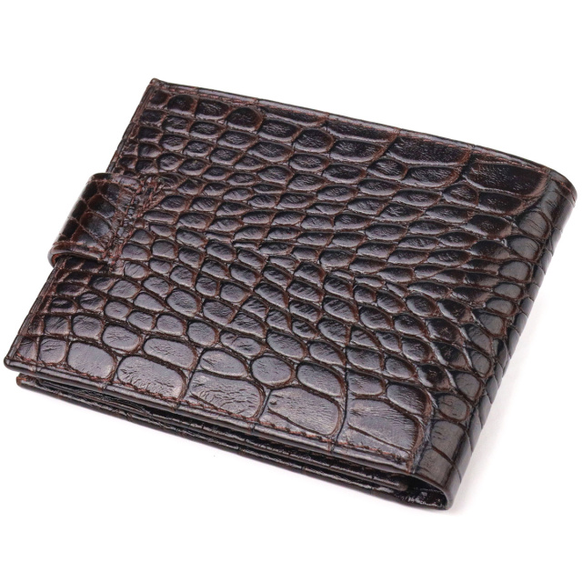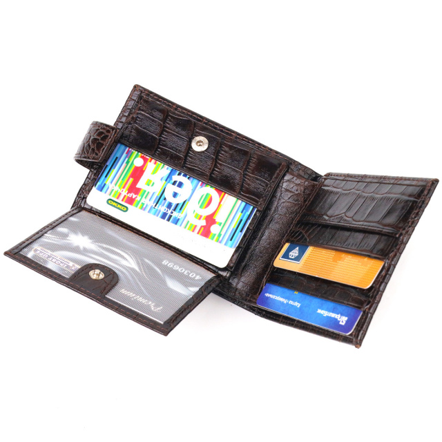 - гаманець упакований у фірмову коробочку. Оригінальний чоловічий гаманець з натуральної фактурної шкіри з тисненням під крокодила. Аксесуар має одне основне відділення з перегородкою, в яке поміщаються купюри всіх номіналів, дев'ять кишень для карток, дві з яких під сіточкою, монетниця та дві прилеглі кишені. Закривається аксесуар хлястиком на кнопку. Колір фурнітури – срібло. Ви легко зможете помістити його в кишеню штанів чи маленьку сумку. Запакований гаманець картонну коробку. Шкіряний гаманець є чудовим подарунком для рідних та близьких людей. ОПЛАТА та ДОСТАВКА : накладний платіж з передоплатою 200 грн.Терміни відправлення : 1-3 робочих днів